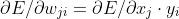 수식 6 - 유닛 i에서 j로의 가중치 w_i_j에 대한 편미분, 즉 가중치들이 오류에 미치는 영향
