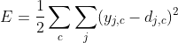 수식 3 - output 을 y_j_c, 기대한 값을 d_j_c라 할 때 전체 에러. 여기서 c는 케이스에 대한 인덱스, j는 출력 유닛에 대한 인덱스이다.