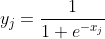 수식 2 - j번째 노드가 가중 입력 x_j를 받았을 때 출력. 시그모이드 어서오고.