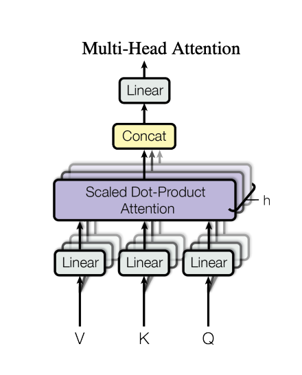 아이고 머리야... 보기만해도 머리가 어지러워지는 이름이다. 근데 사실 쉽다. 셀프 어텐션(이하 어텐션)을 병렬로 만들었더니 효과가 좋더라~ 라는 내용이다. 위에서 RNN을 이야기할 때, RNN을 여러번 연결하면 각각의 셀들이 특정 패턴들만 집중해서 전체적으로 효과가 좋아진다고 했는데 그 개념을 Attention에도 차용했다. 다만 선형 구조가 아니라 병렬적인 구조로 동작한다. 심지어 계산 비용도 동일하다.